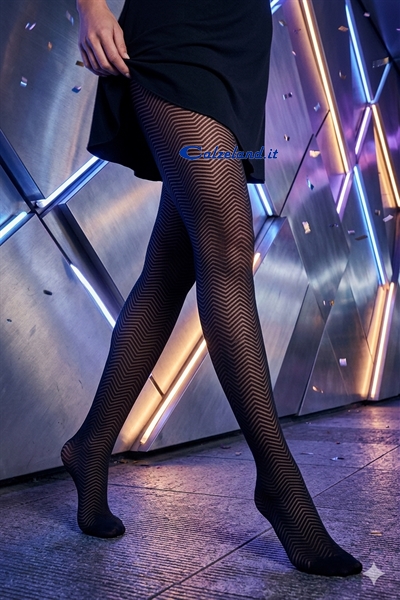 Experience the power of geometric design with Devoré tights, an exclusive creation where technique reaches its maximum expression. This style doesn't just dress the legs, but outlines them with a hypnotic alternation of opaque stripes and ultra-sheer bands, creating a visual "rhythm" that captures the eye with every movement.